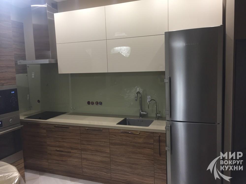 Так же возможна установка Стеновой панели – МДФ 6 мм (покрытая пластиком производства Италия, США, Россия или Германия, фотопечать на стекле(скинали)-6 мм каленое стекло с нанесением фотопечати,стеновая панель фотопечать на МДФ 4 мм,фартук-плитка (самостоятельно заказчиком).