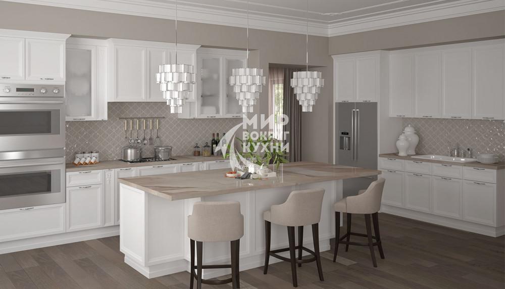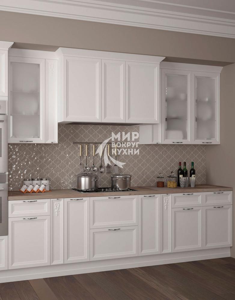 Столешница – из искуственного камня 38 мм (не входит в общую стоимость гарнитура). Возможно установить столешницу 38 мм из пластиков США (Wilsonart), Россия (Arcobaleno), Германия (Duropal). Так же возможна установка Стеновой панели – МДФ 6 мм (покрытая пластиком производства Италия, США, Россия или Германия, фотопечать на стекле(скинали)-6 мм каленое стекло с нанесением фотопечати,стеновая панель фотопечать на МДФ 4 мм.