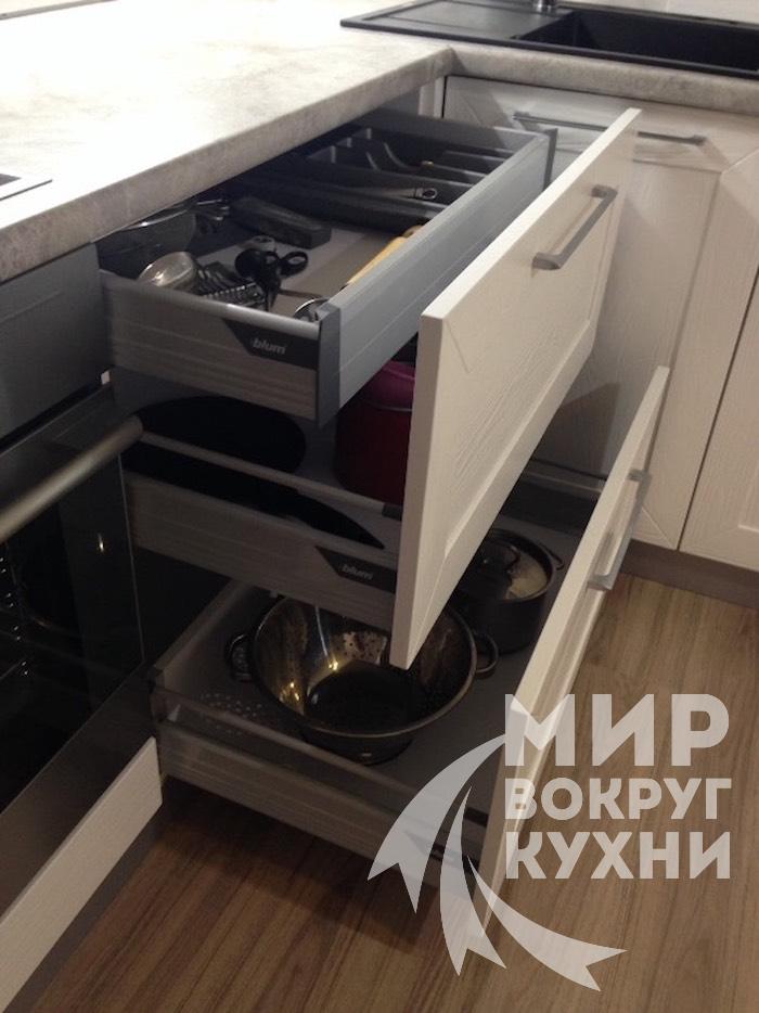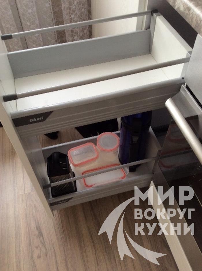 Вся фурнитура данного гарнитура премиум класса фирмы Blum (Австрия). Возможна установка фурнитуры фирмы Boyard (Россия-Китай), Samet (Турция), Hettich (Германия)