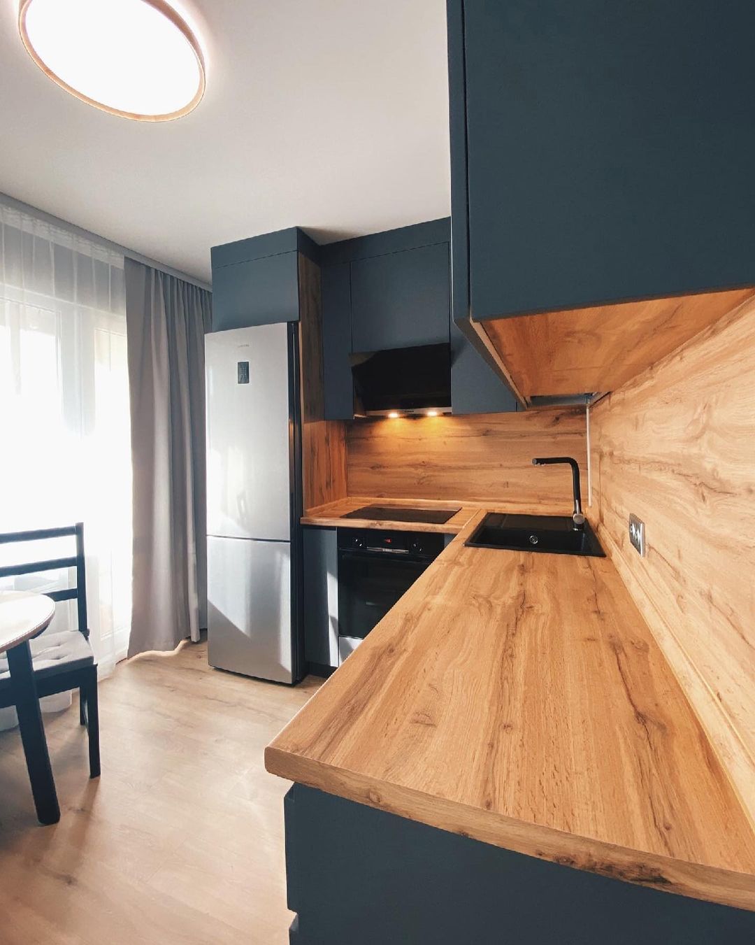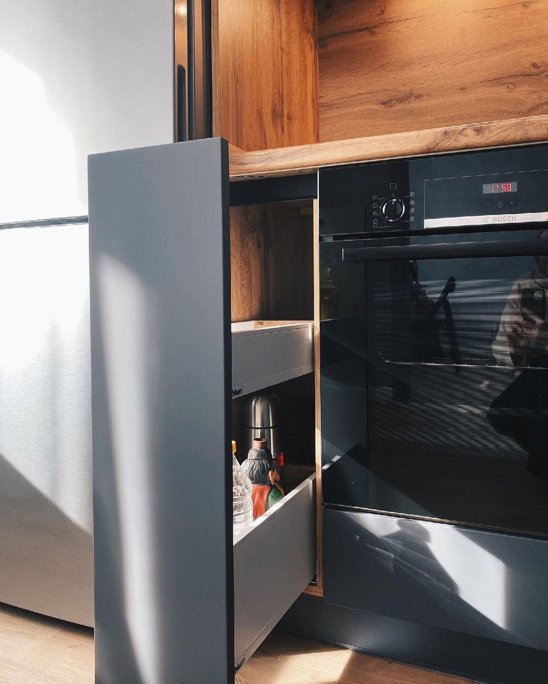 Нашли через Интернет Кухни Мила. Приехал замерщик, замерил, собрали. Получилось красиво, классно.