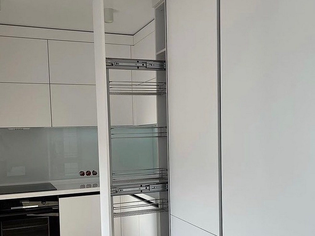 Это тот самый гарнитур, на все времена. Безупречный внешний вид и шикарная вместительность – всё, что нужно скрыть от посторонних глаз, будет скрыто. Чёткая геометрия линий, вместительные стеллажи, компактная рабочая зона. Здесь всё, что нужно! И ничего лишнего, как в самом простом рецепте, из которого получается самое аппетитное блюдо.